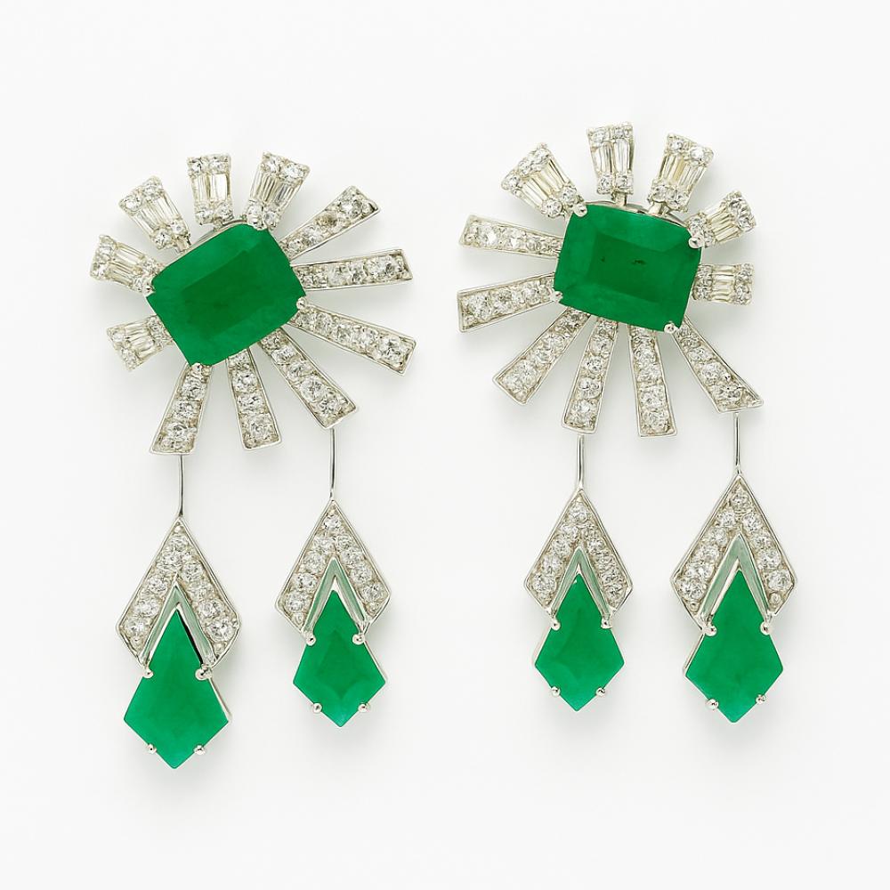 حلق ذهب والماس من مجوهرات فورسيز الذهب عيار بوزن 12.67 جرام مرصعة بـألماس عالي النقاوة بوزن 2.25 قيراط وبوزن الزمرد 11.61