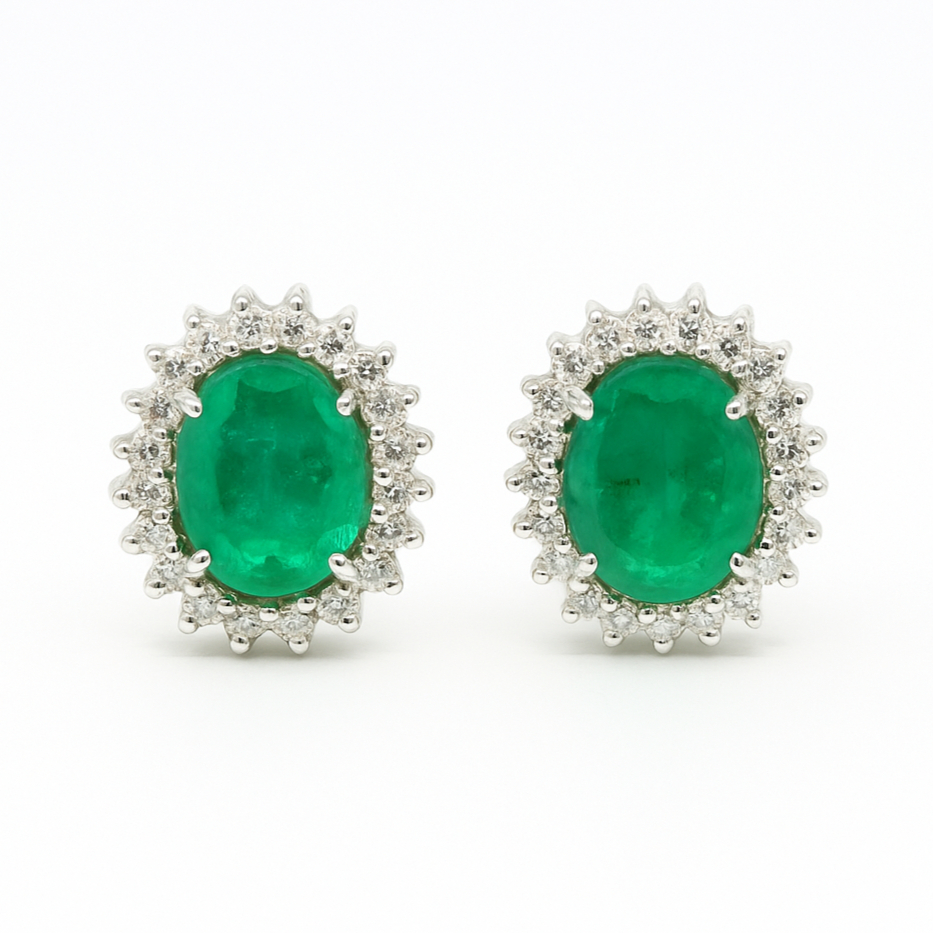 حلق ذهب والماس من مجوهرات فورسيز الذهب عيار بوزن 6.4 جرام مرصعة بـألماس عالي النقاوة بوزن 6.4 قيراط وبوزن زمرد 0.85